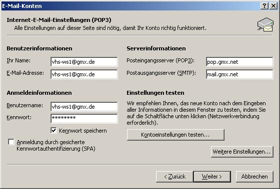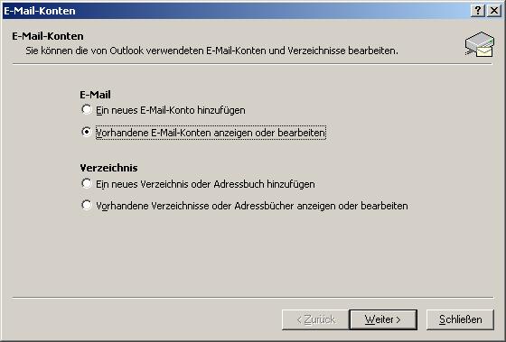 Wählen Sie: -Vorhandene Email Konten-