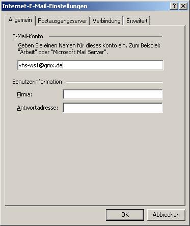 vergeben Sie einen Email Kontonamen