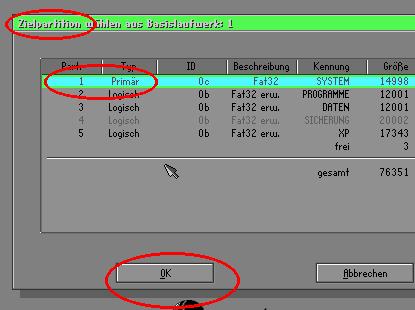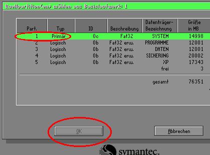 die Quellpartition wird noch mal zur Kontrolle angezeigt.