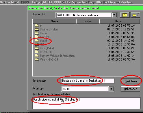 3.)Zielverzeichnis auswählen, Dateiname und Beschreibung