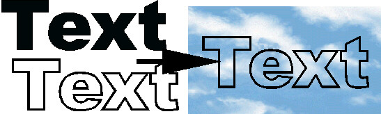 Schritte als Capture Bild 1.) Text schreiben (schwarz) 2.) Textverändern (innen weiß) 3.) PowerClip ansetzen(nach Kopie) |